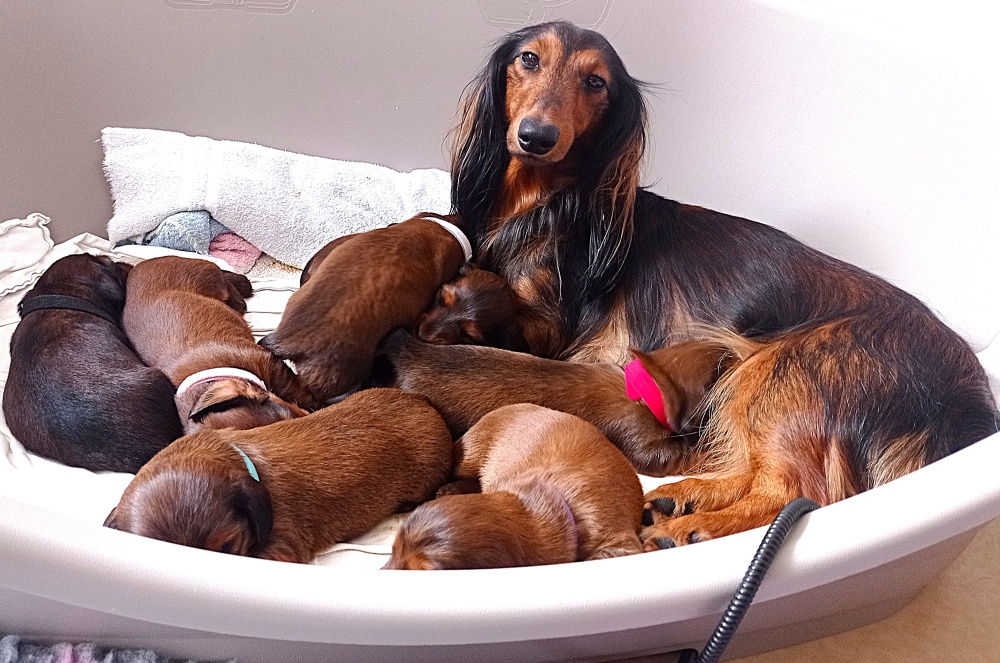 Nabízíme k prodeji krásná štěňátka trpasličího jezevčíka dlouhosrstého s průkazem původu (PP).
